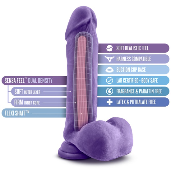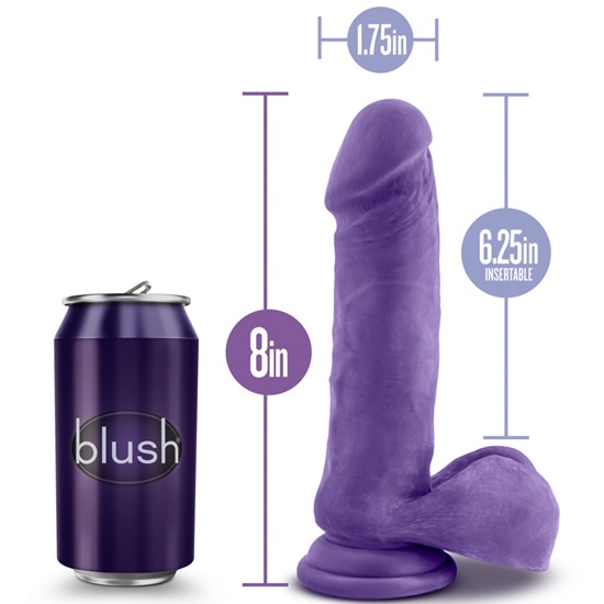 The Au Naturel Bold Hero 8 Inch Dildo with balls by Blush Novelties is a vaginal and anal stimulating sex toy for women and men, this realistic dildo has a stiff inner shaft and soft outer skin. The realistic textured details are plushy Sensa Feel Dual Density lifelike skin material making the feel and flexibility of a real cock.