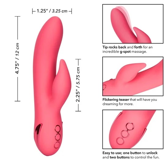 The California Dreaming San Francisco Sweetheart Rabbit Vibrator by CalExotics is a dual-stimulating rechargeable women’s sex toy! targets your g-spot with its come hither motion in the shaft, whilst the rabbit ear vibrates and flickers on your clitoris simultaneously bringing you to ecstasy.