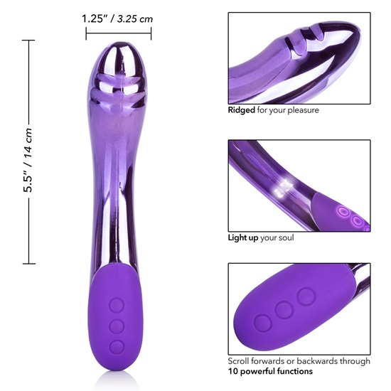 The Dazzled Vibrance G-Spot Vibrator by California Exotic is a USB rechargeable women’s sex toy, targeting your g-spot with a curved shaft bringing you to ecstasy.