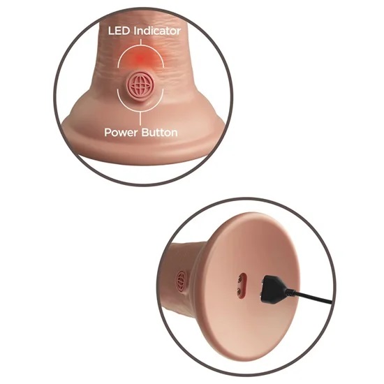 The King Cock Elite 7 Inch Vibrating Silicone Dual Density Dildo by Pipedream is a rechargeable vaginal and anal stimulating toy for women and men, this realistic dildo has a stiff inner shaft and soft outer skin. The realistic textured details are plushy dual density silicone lifelike skin material making the feel and firmness of a real penis.