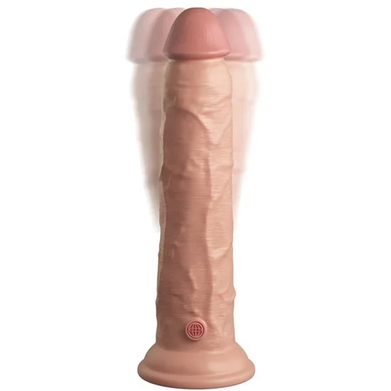 The King Cock Elite 9 Inch Vibrating Silicone Dual Density Dildo by Pipedream is a rechargeable vaginal and anal stimulating toy for women and men, this realistic dildo has a stiff inner shaft and soft outer skin. The realistic textured details are plushy dual density silicone lifelike skin material making the feel and firmness of a real penis.