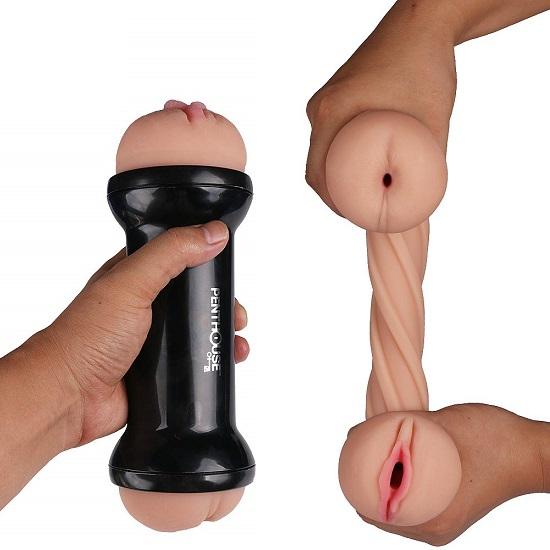 The Penthouse Capri Cavanni Double-Sided Stroker directly moulded from this Porn Stars vagina and anus. Cyberskin Sleeve delivers realistic life-like detail including a textured inner tunnel to mimic sensations of really being inside her.