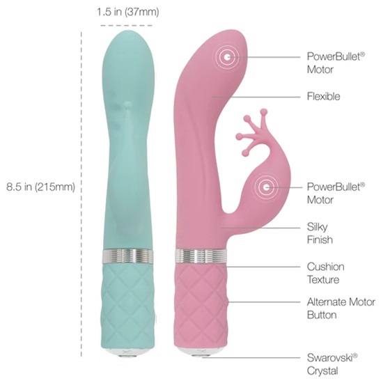 The Pillow Talk Kinky Vibrator features two independently controlled motors that offer “Press and Hold” technology power bullet multispeed vibrations. Sending waves of delightful feelings giving you all the control you need to master the speed and intensity of your orgasm.