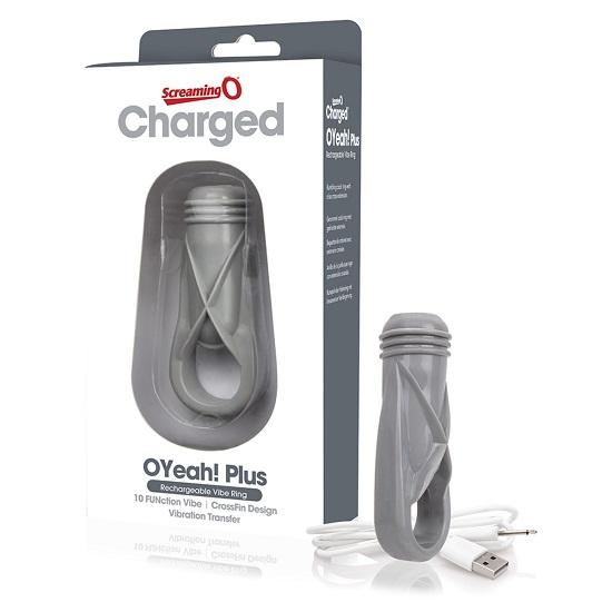 Take a next-level ride with the Screaming O Charged Oyeah Plus Cock Ring, an extra-stretchy vibrating cock ring powered by rechargeable Vooom(R) technology positioned vertically to deliver the perfect massage.