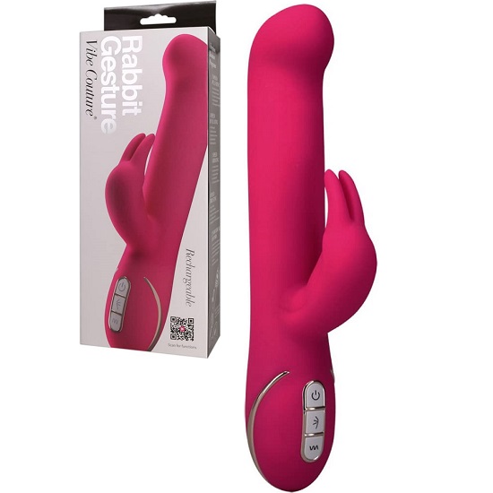 Our Vibe Couture Gesture Vibrator features 2 powerful motors that offer 3 speeds of rocking come hither motion in the head and 7 vibration modes in the clitoral stimulator. The exquisite array of rabbit vibrators rocking come hither motion and vibration patterns hit all the nerve endings in your clitoris and internal pleasure zones.